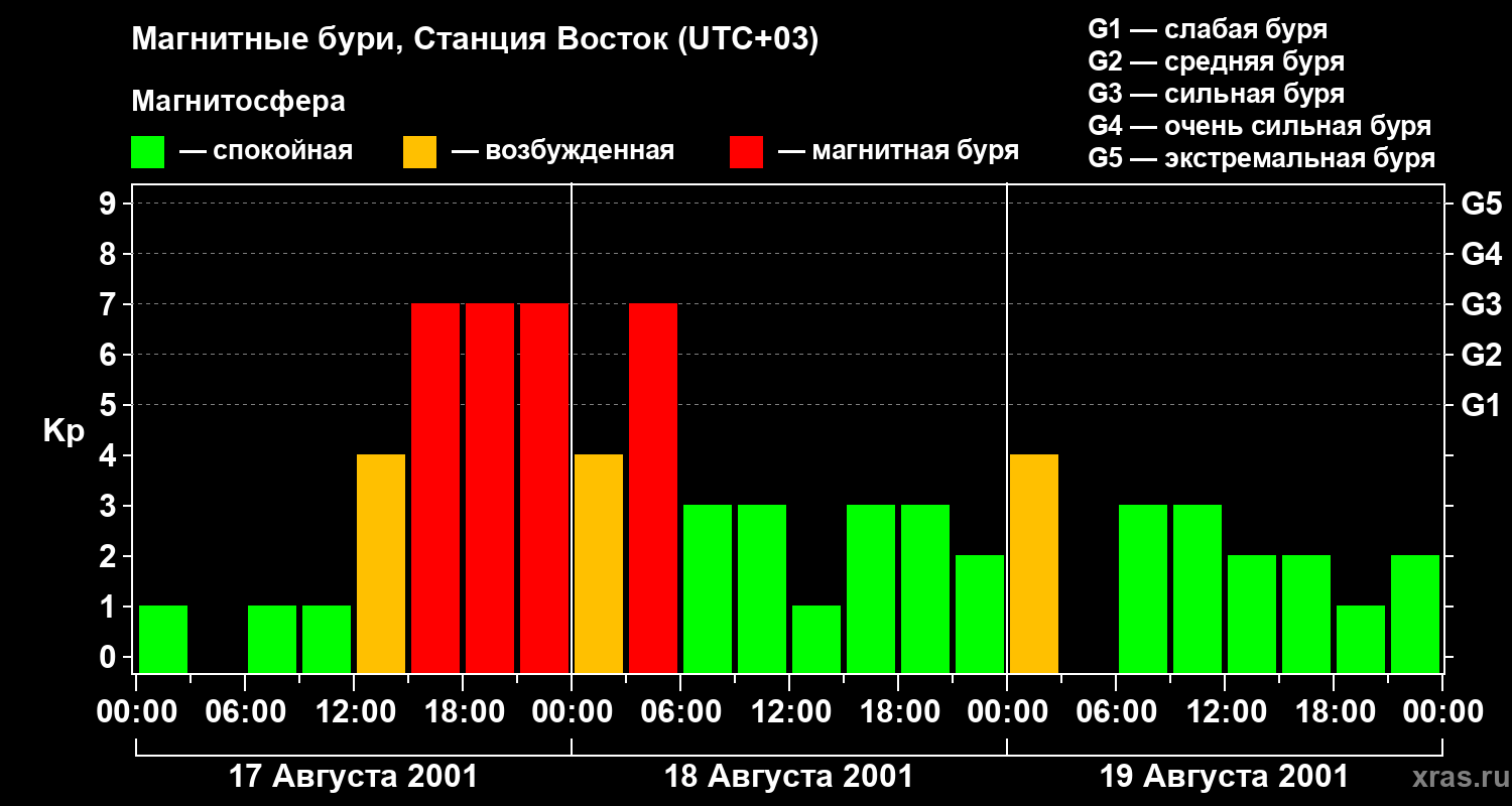 Магнитные бури локации Станция Восток — 19 августа 2001 года
