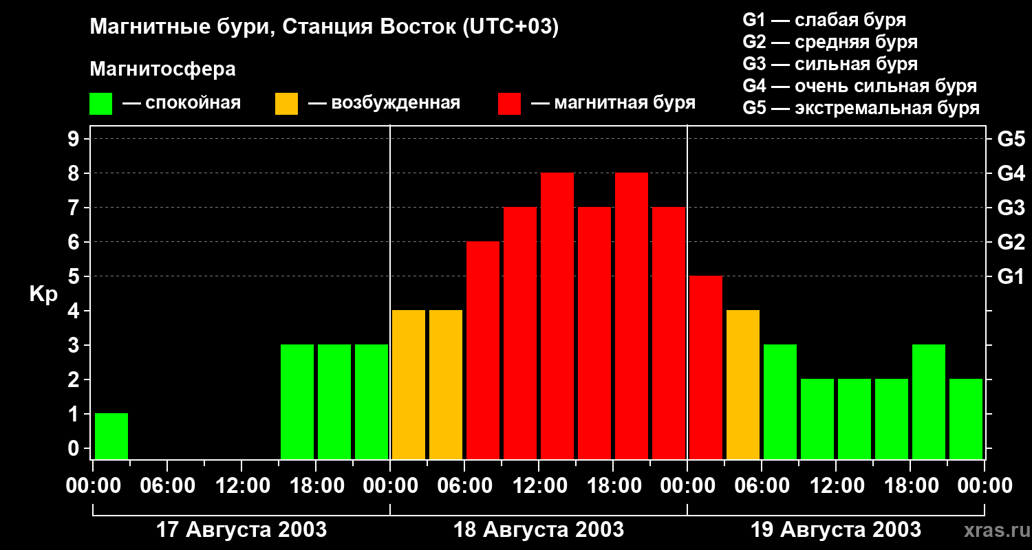 Магнитные бури локации Станция Восток — 19 августа 2003 года