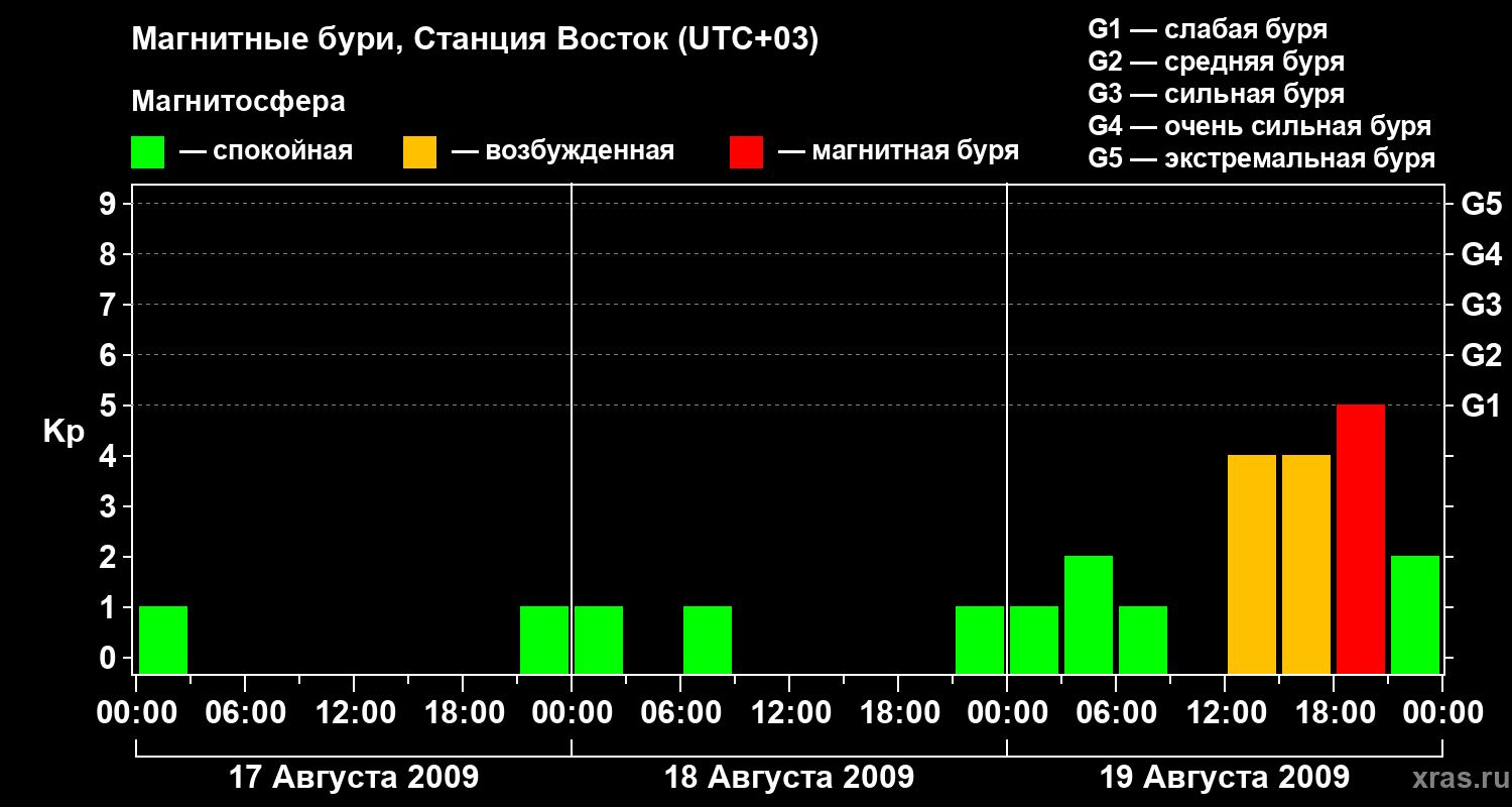 Магнитные бури локации Станция Восток — 19 августа 2009 года