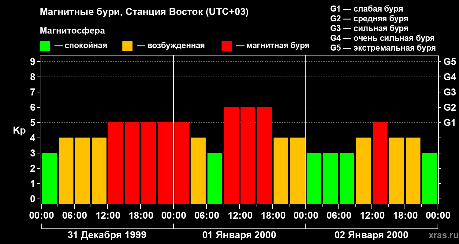 Магнитные бури локации Станция Восток — 2 января 2000 года