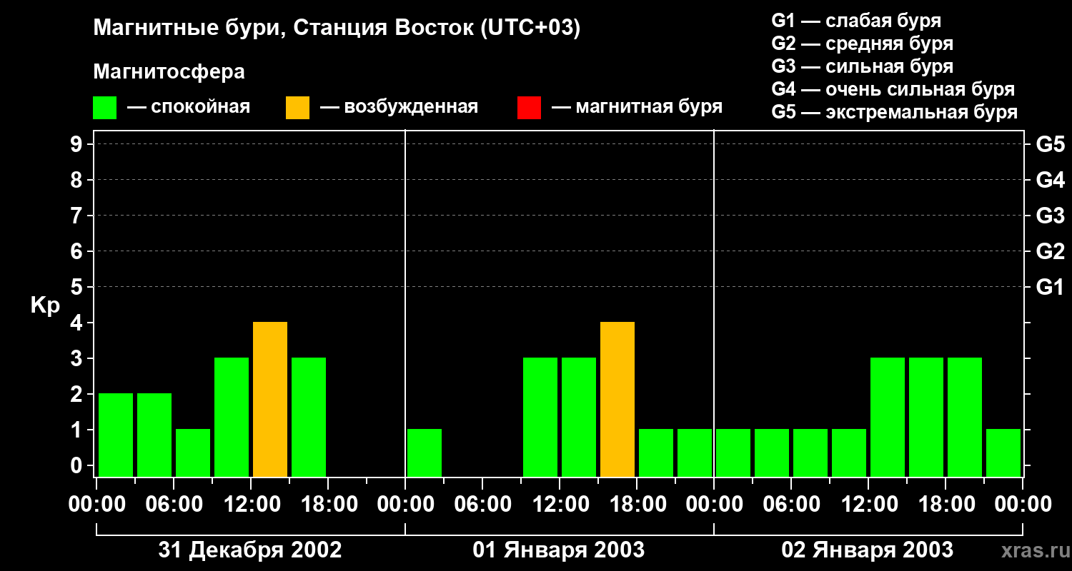 Магнитные бури локации Станция Восток — 2 января 2003 года