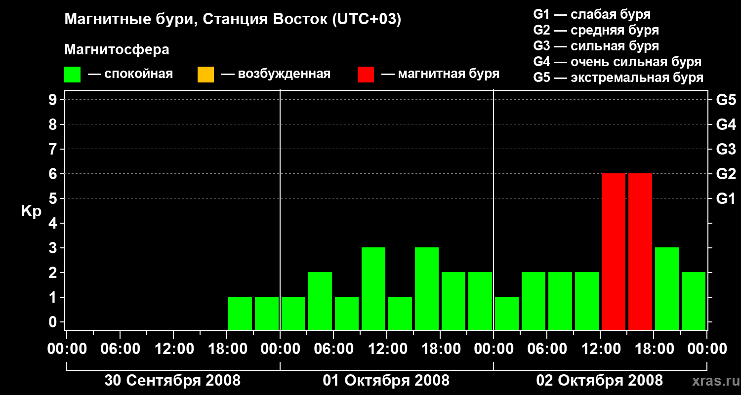 Магнитные бури локации Станция Восток — 2 октября 2008 года
