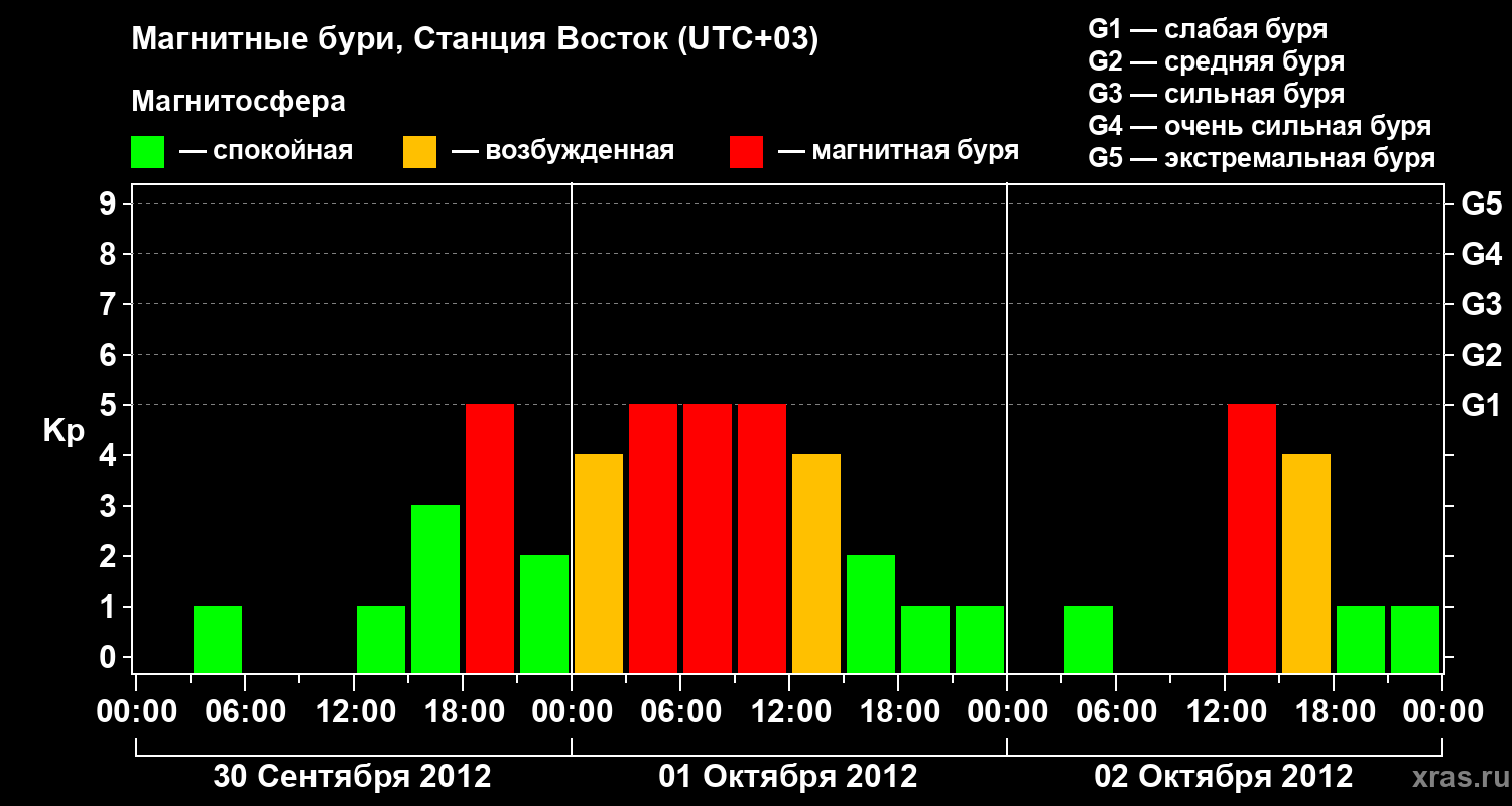 Магнитные бури локации Станция Восток 2 октября 2012 года