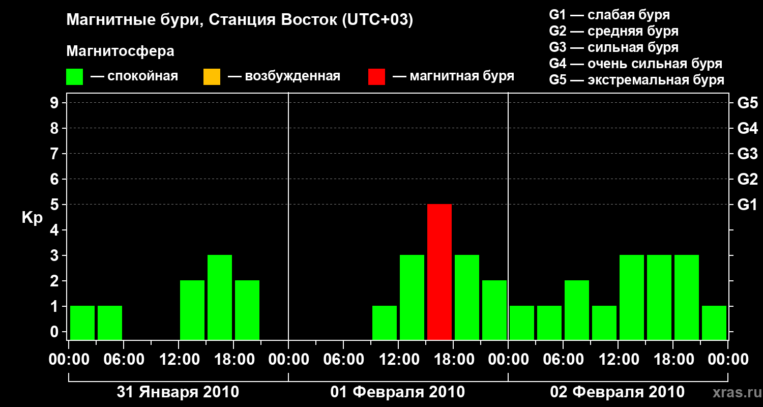 Магнитные бури локации Станция Восток — 2 февраля 2010 года