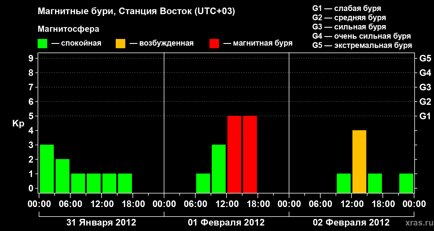 Магнитные бури локации Станция Восток — 2 февраля 2012 года