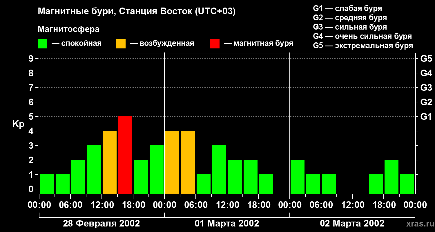 Магнитные бури локации Станция Восток — 2 марта 2002 года