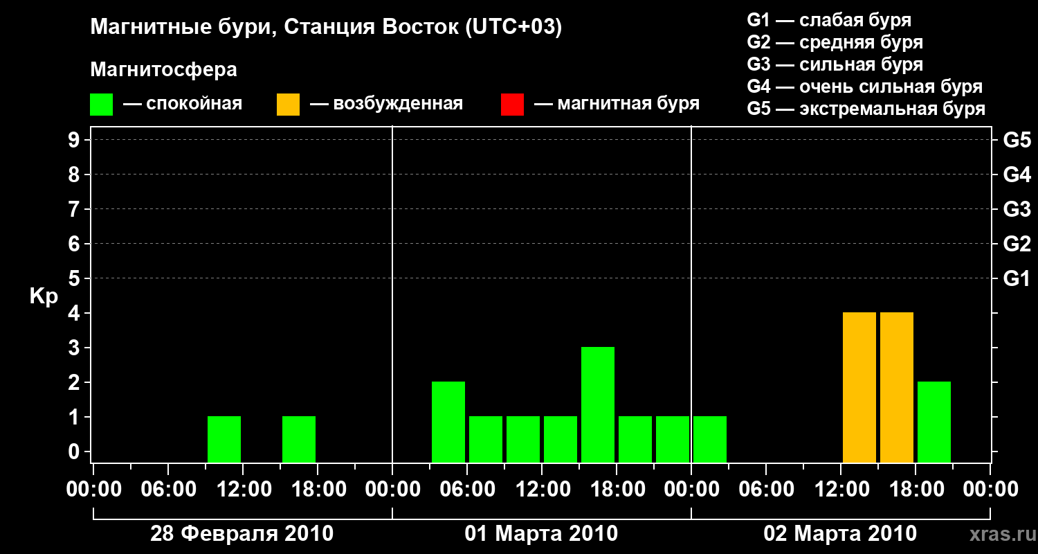 Магнитные бури локации Станция Восток — 2 марта 2010 года