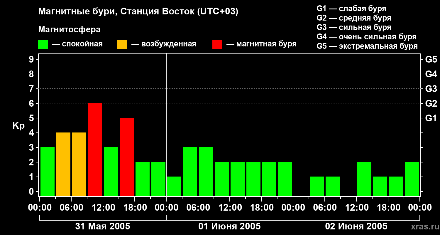 Магнитные бури локации Станция Восток — 2 июня 2005 года