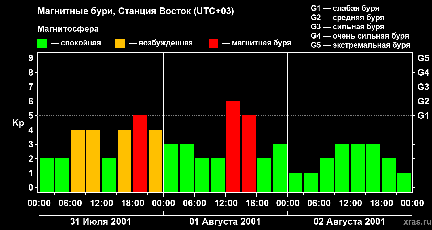 Магнитные бури локации Станция Восток — 2 августа 2001 года