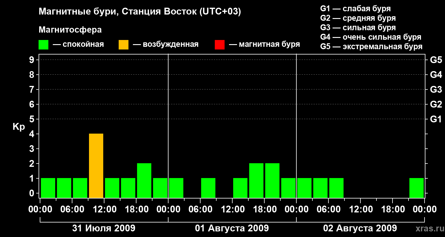 Магнитные бури локации Станция Восток 2 августа 2009 года