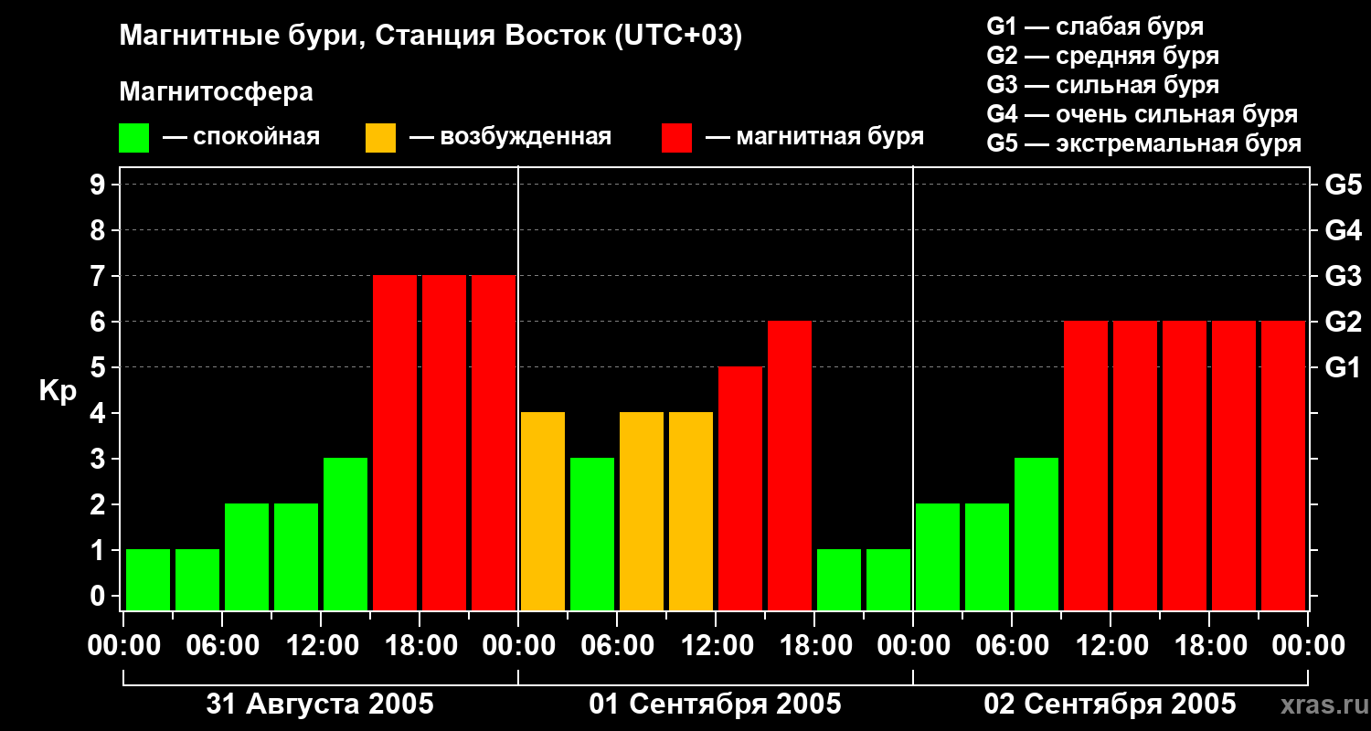 Магнитные бури локации Станция Восток — 2 сентября 2005 года