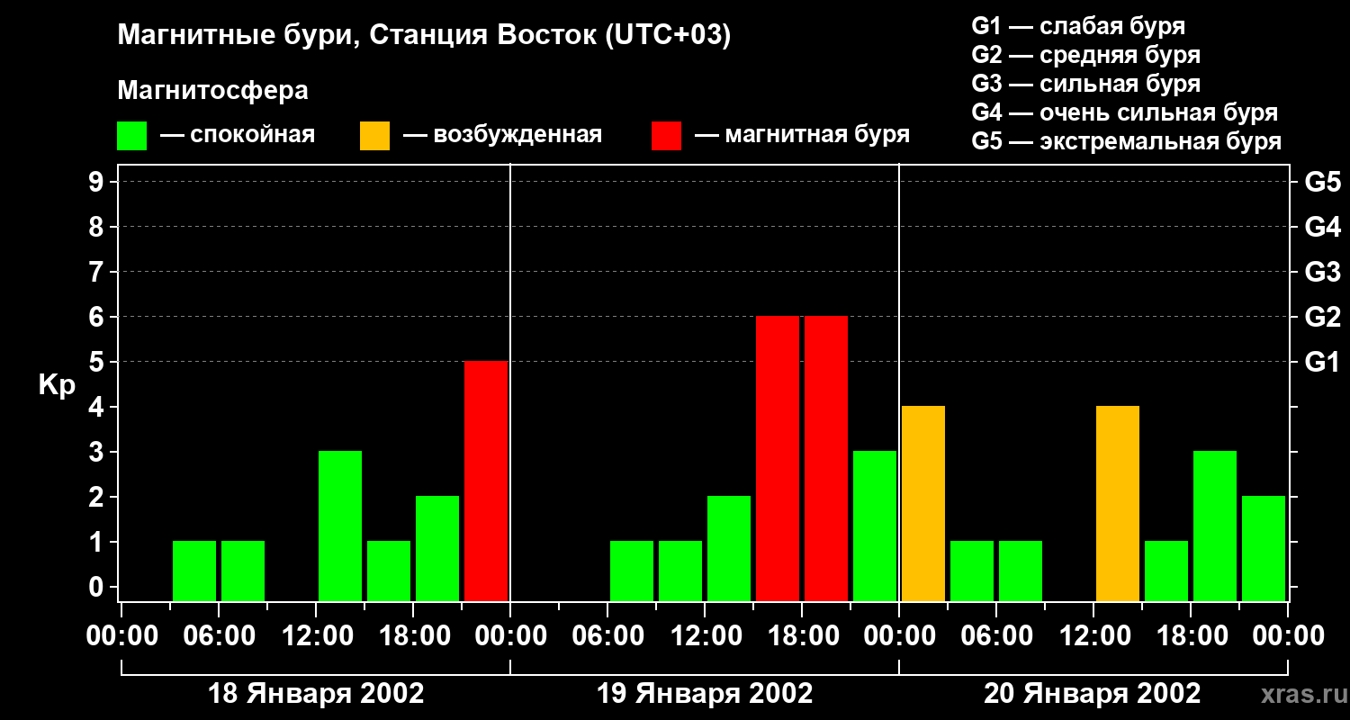 Магнитные бури локации Станция Восток 20 января 2002 года