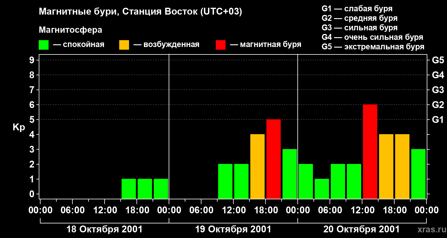 Магнитные бури локации Станция Восток — 20 октября 2001 года