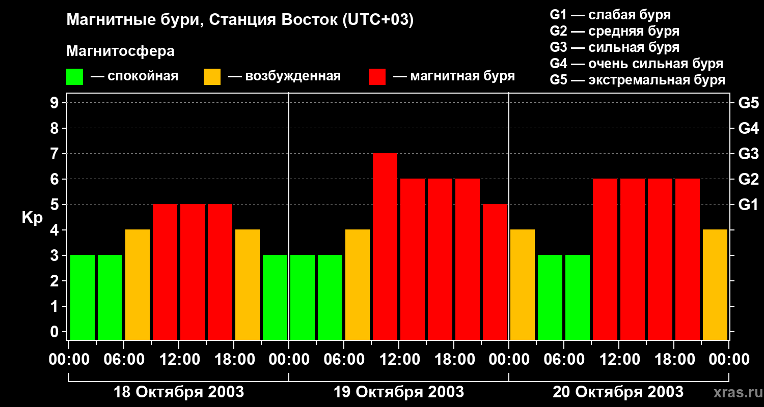 Магнитные бури локации Станция Восток 20 октября 2003 года