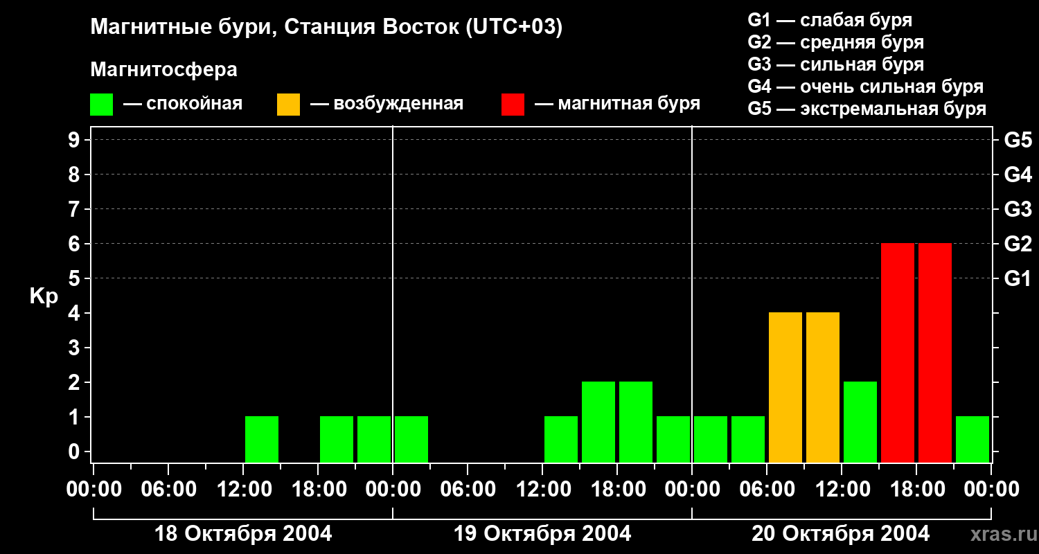 Магнитные бури локации Станция Восток — 20 октября 2004 года