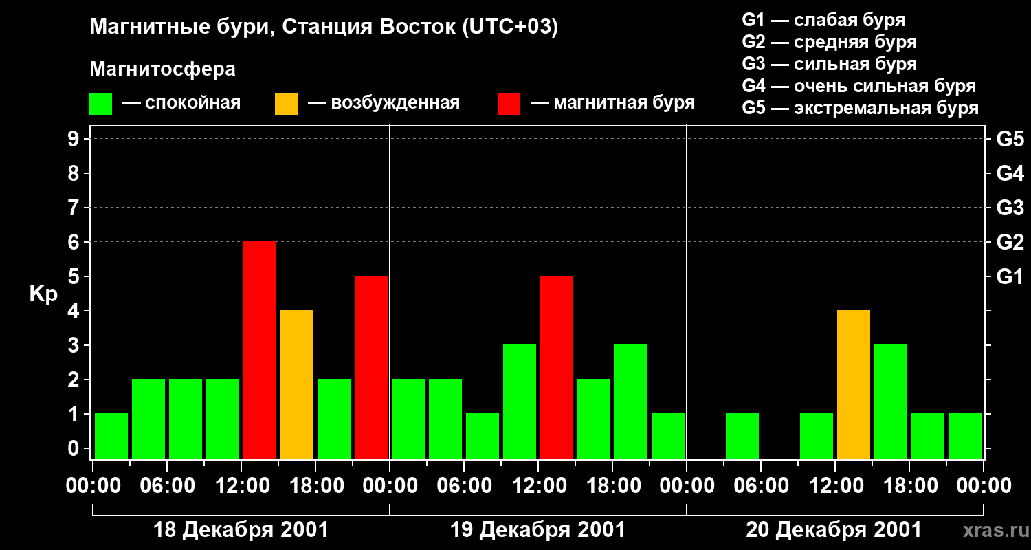 Магнитные бури локации Станция Восток — 20 декабря 2001 года