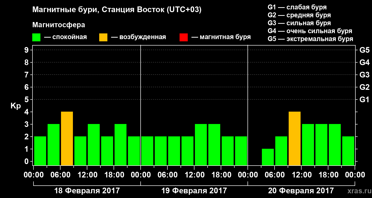 Магнитные бури локации Станция Восток — 20 февраля 2017 года