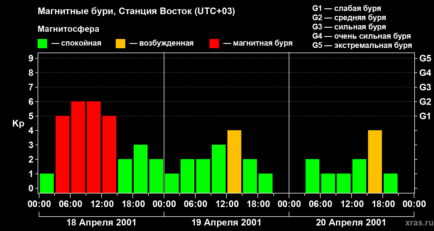 Магнитные бури локации Станция Восток — 20 апреля 2001 года