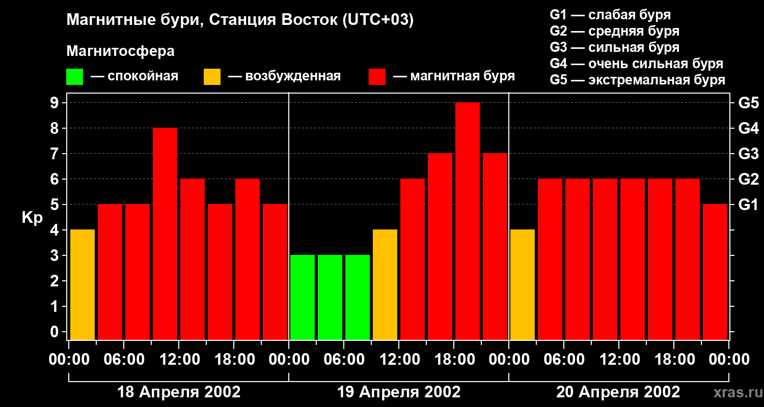 Магнитные бури локации Станция Восток — 20 апреля 2002 года