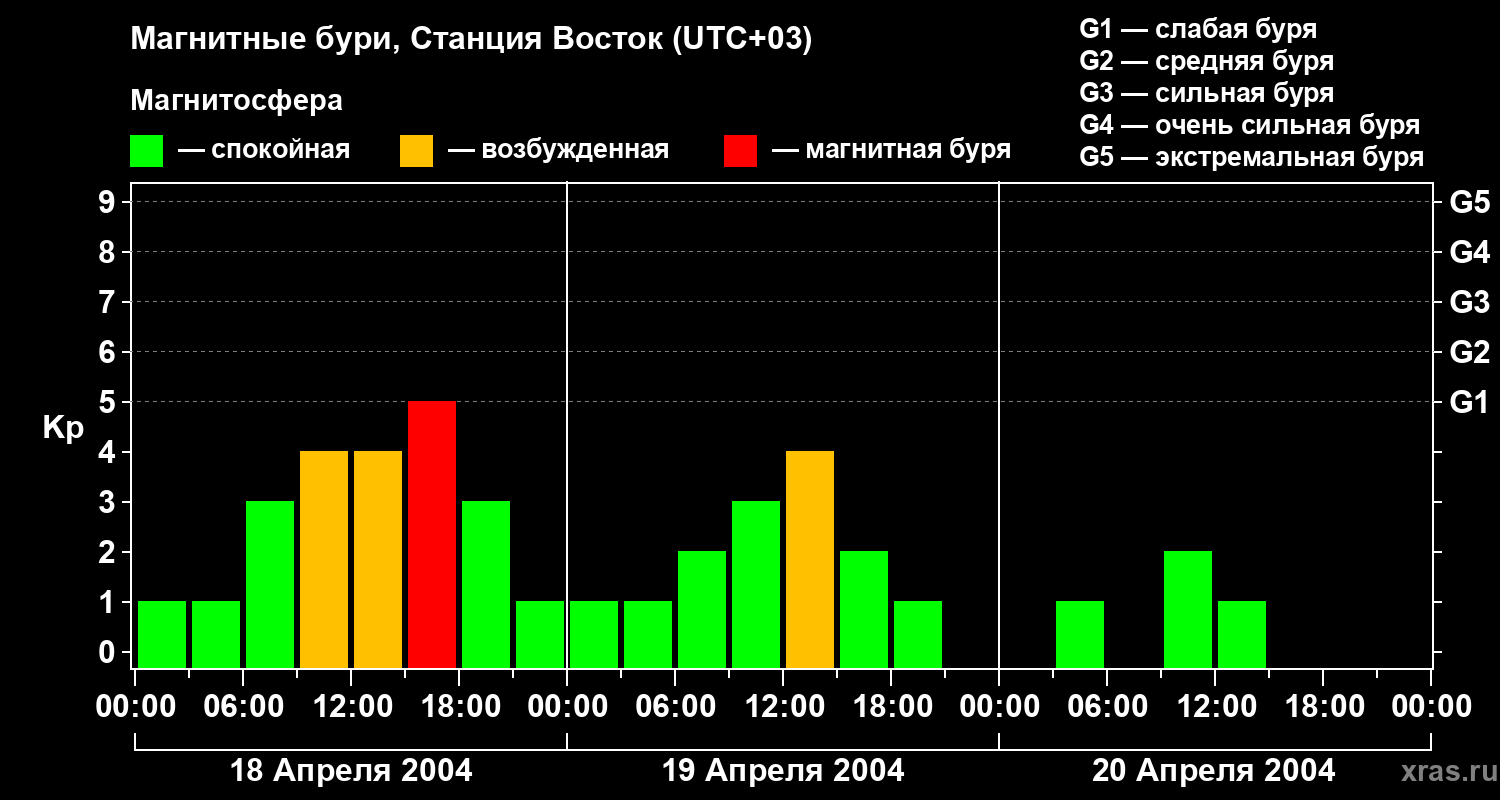 Магнитные бури локации Станция Восток — 20 апреля 2004 года