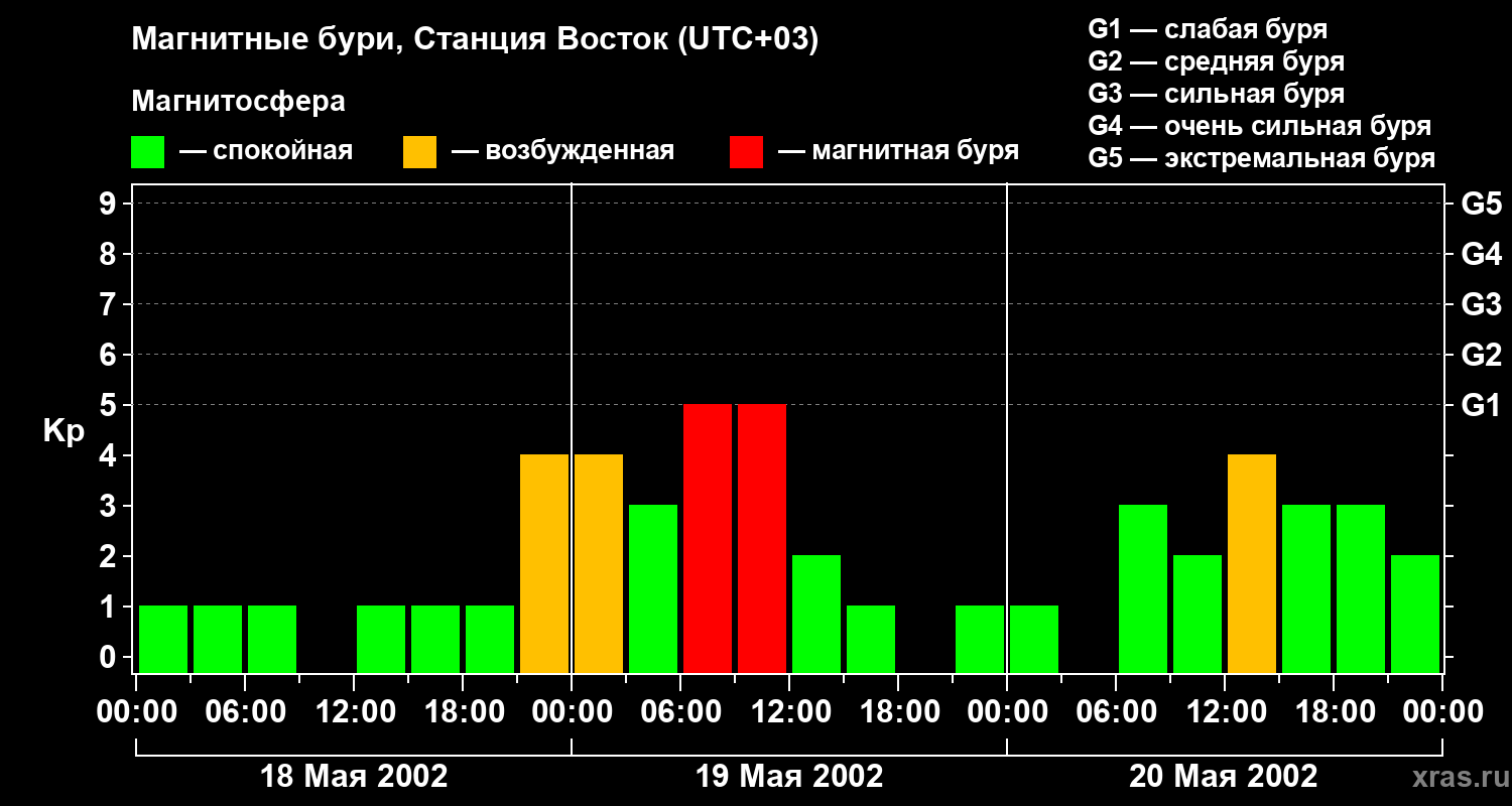 Магнитные бури локации Станция Восток — 20 мая 2002 года