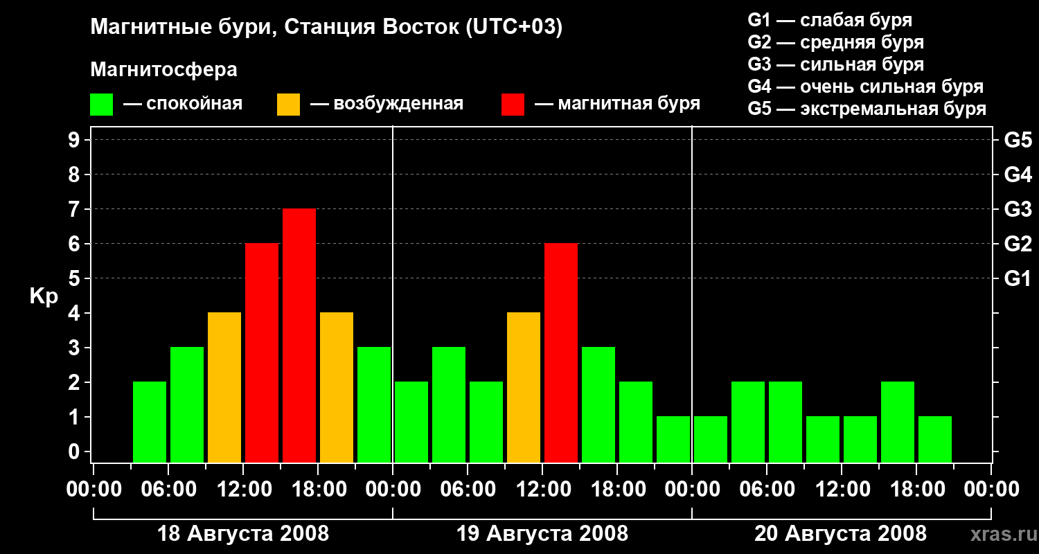 Магнитные бури локации Станция Восток — 20 августа 2008 года