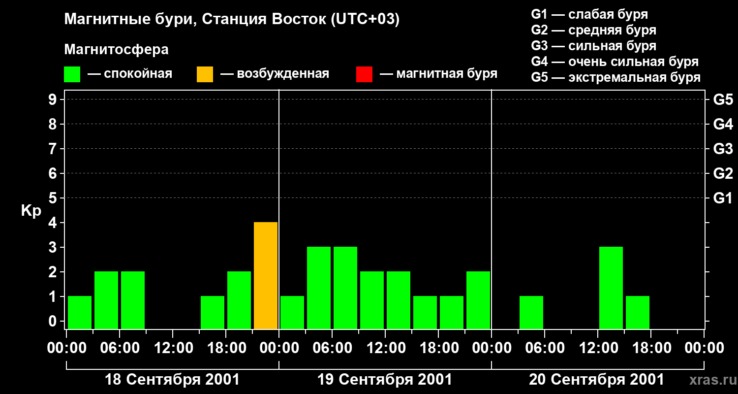 Магнитные бури локации Станция Восток — 20 сентября 2001 года