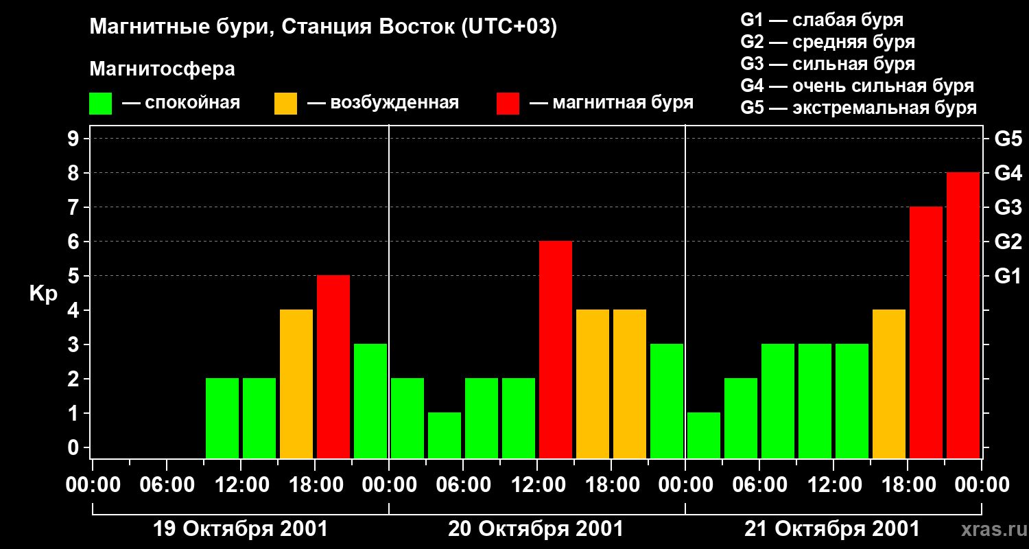 Магнитные бури локации Станция Восток — 21 октября 2001 года