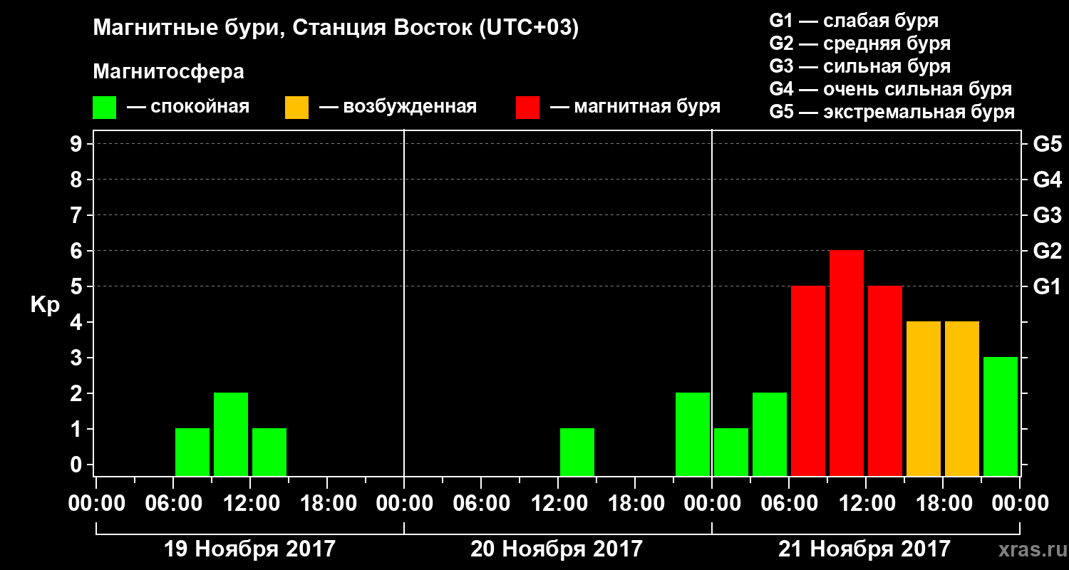 Магнитные бури локации Станция Восток — 21 ноября 2017 года