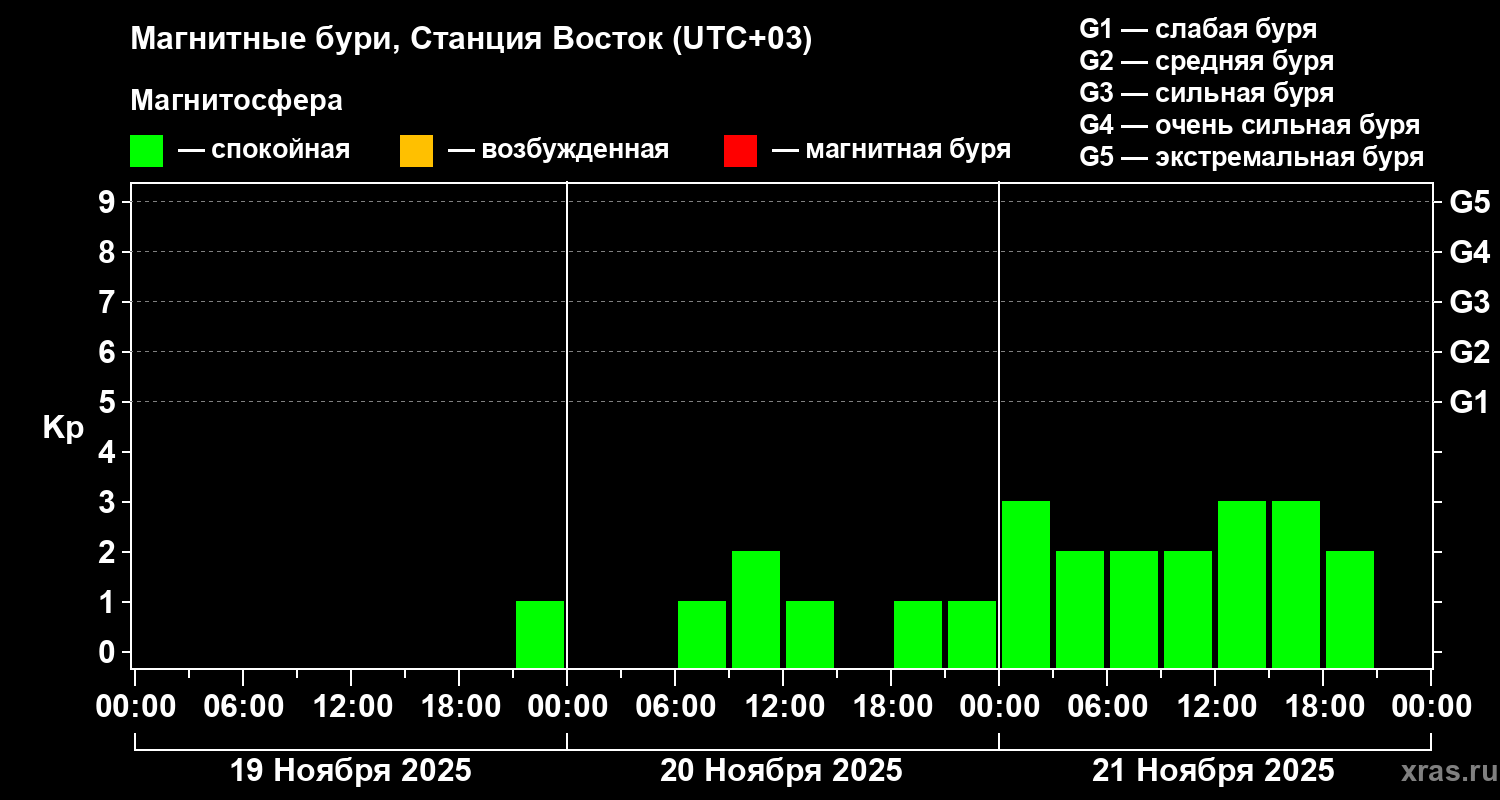 Магнитные бури локации Станция Восток 21 ноября 2025 года