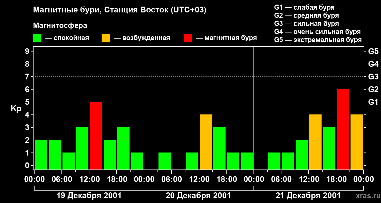 Магнитные бури локации Станция Восток — 21 декабря 2001 года