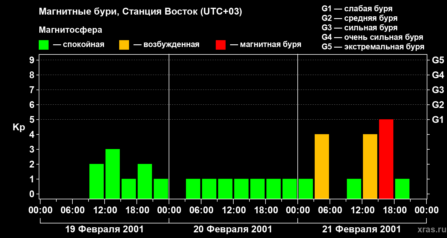 Магнитные бури локации Станция Восток — 21 февраля 2001 года
