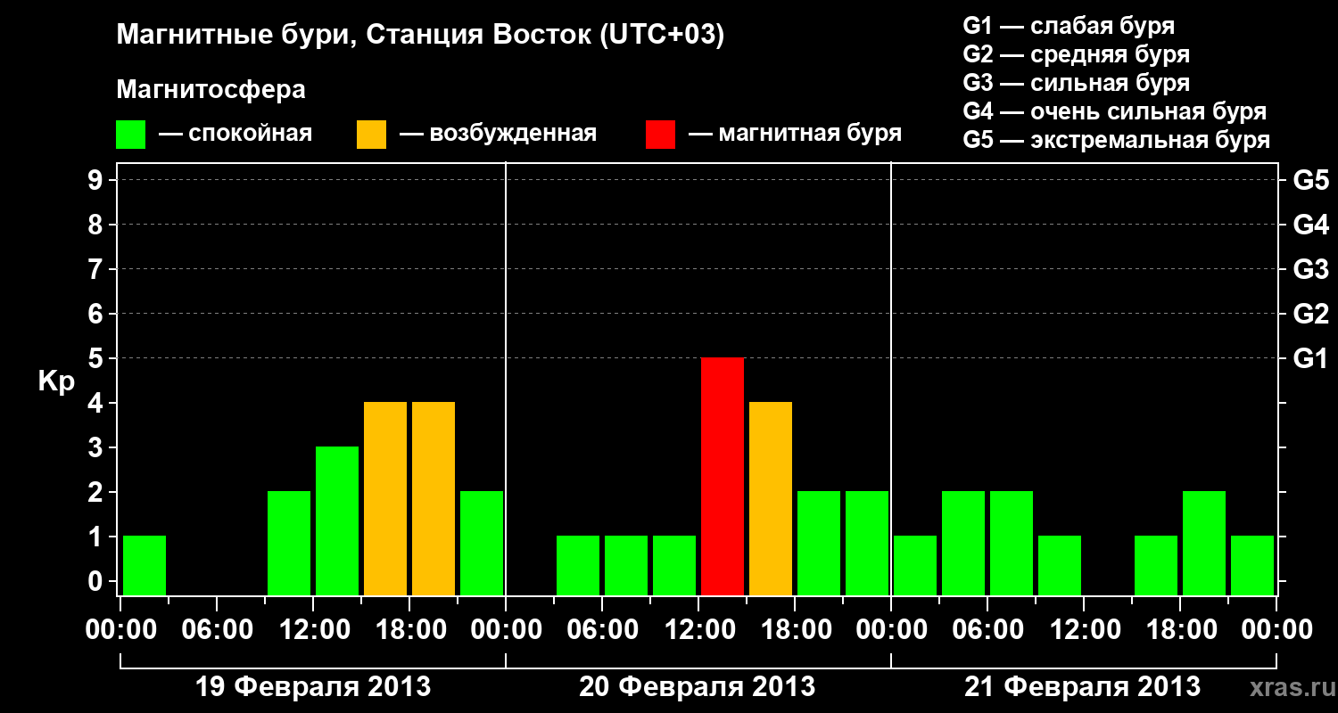 Магнитные бури локации Станция Восток в феврале 2013 года