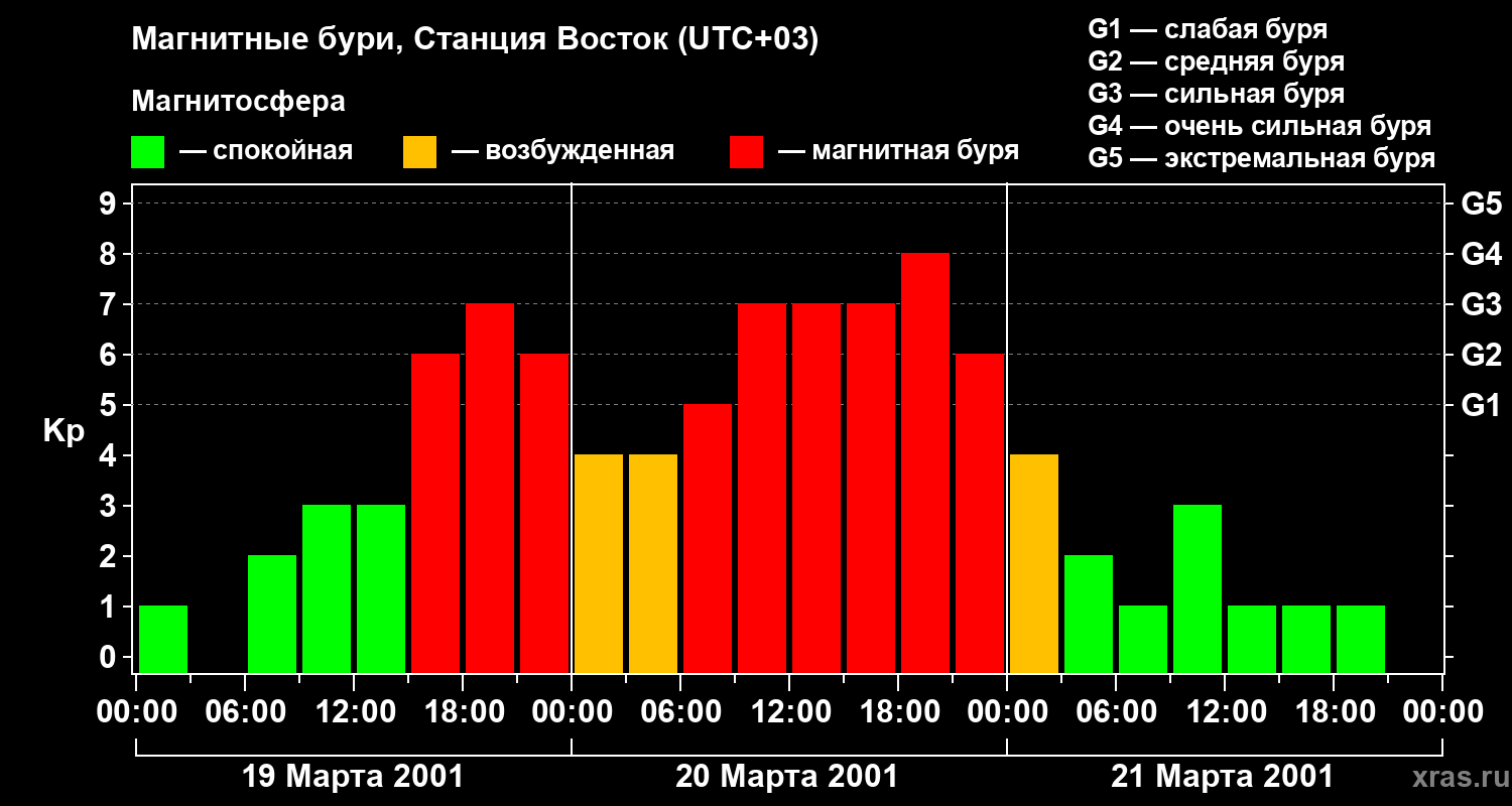 Магнитные бури локации Станция Восток — 21 марта 2001 года