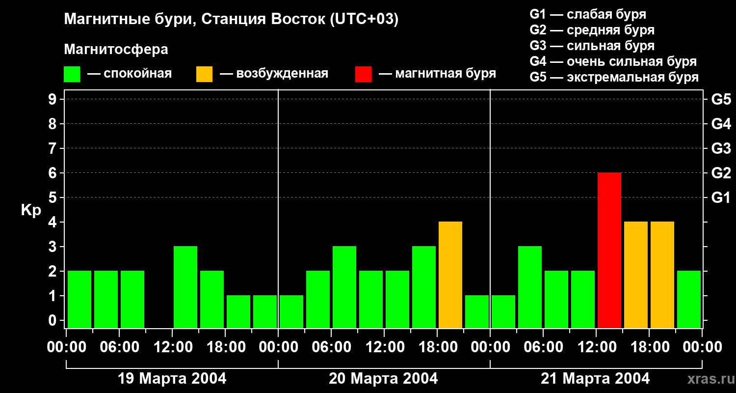 Магнитные бури локации Станция Восток — 21 марта 2004 года