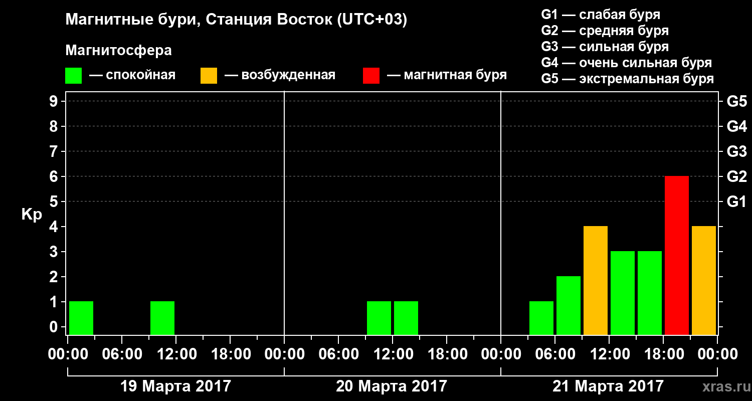 Магнитные бури локации Станция Восток — 21 марта 2017 года