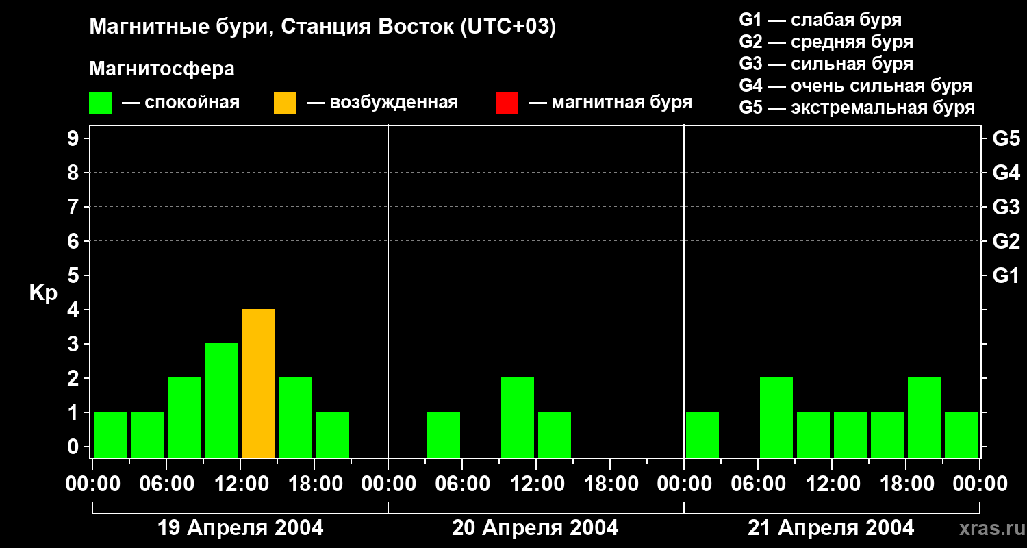 Магнитные бури локации Станция Восток — 21 апреля 2004 года