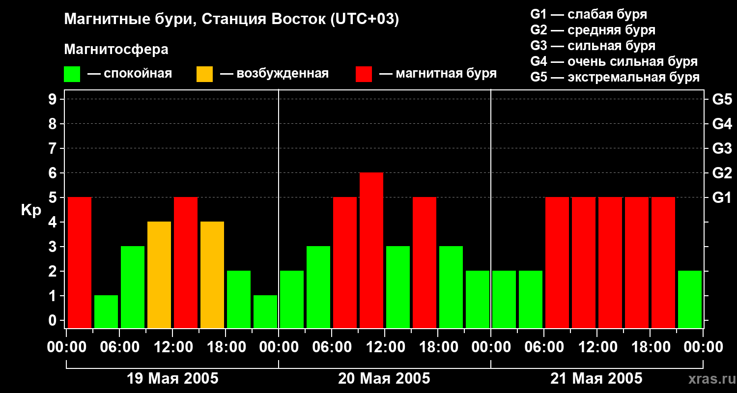 Магнитные бури локации Станция Восток — 21 мая 2005 года