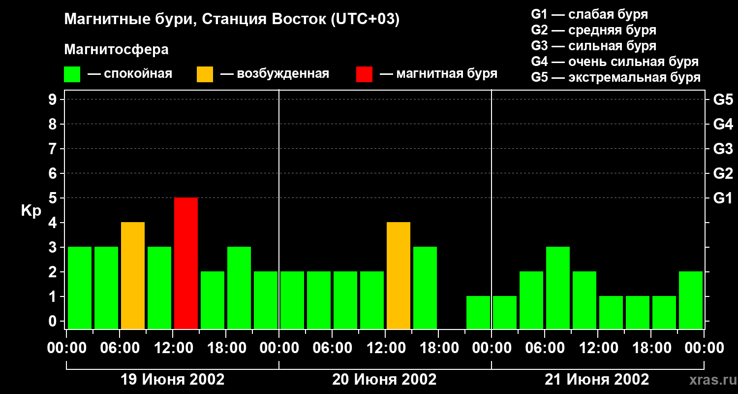 Магнитные бури локации Станция Восток — 21 июня 2002 года