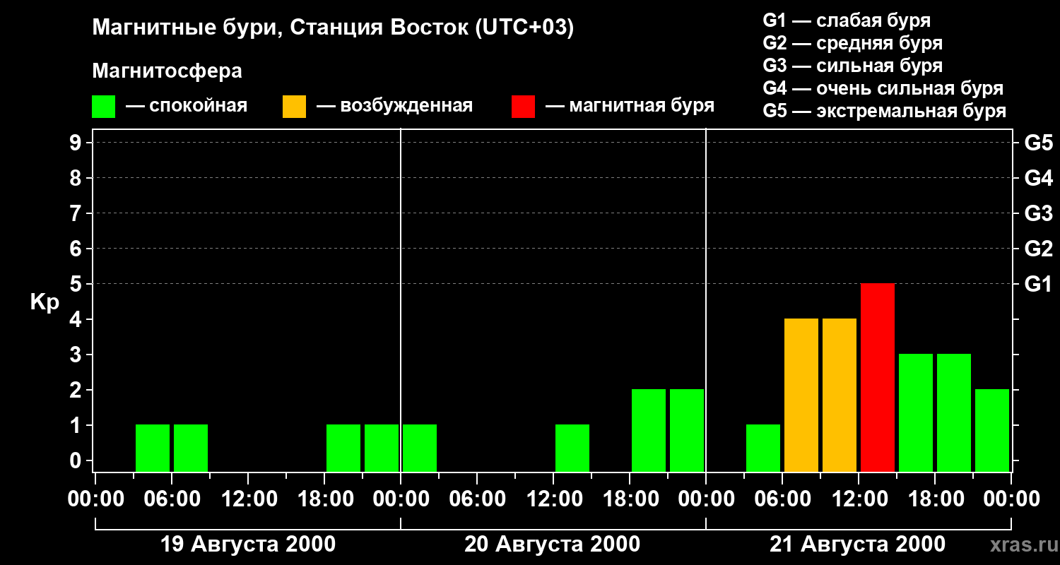 Магнитные бури локации Станция Восток — 21 августа 2000 года