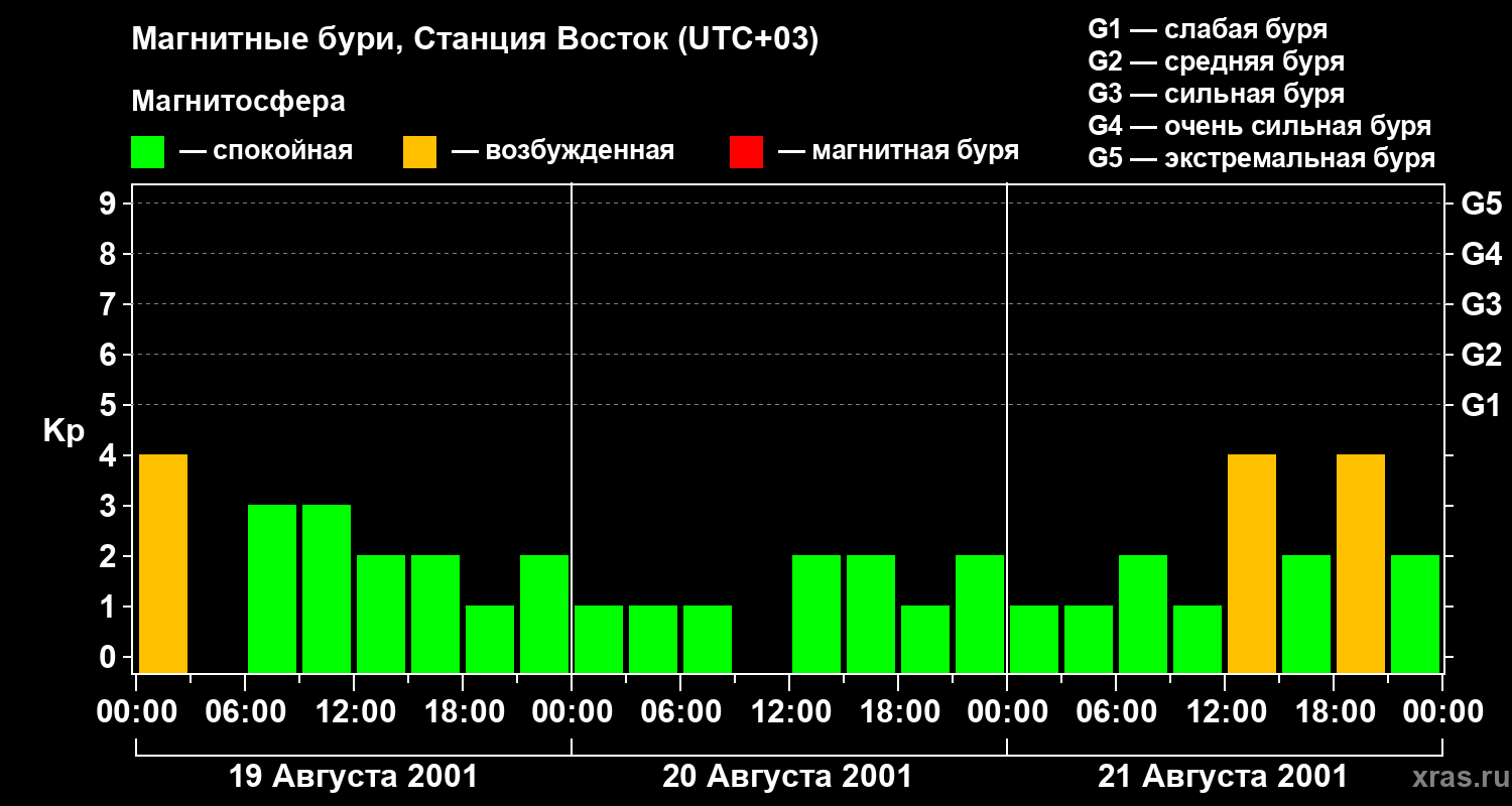 Магнитные бури локации Станция Восток — 21 августа 2001 года