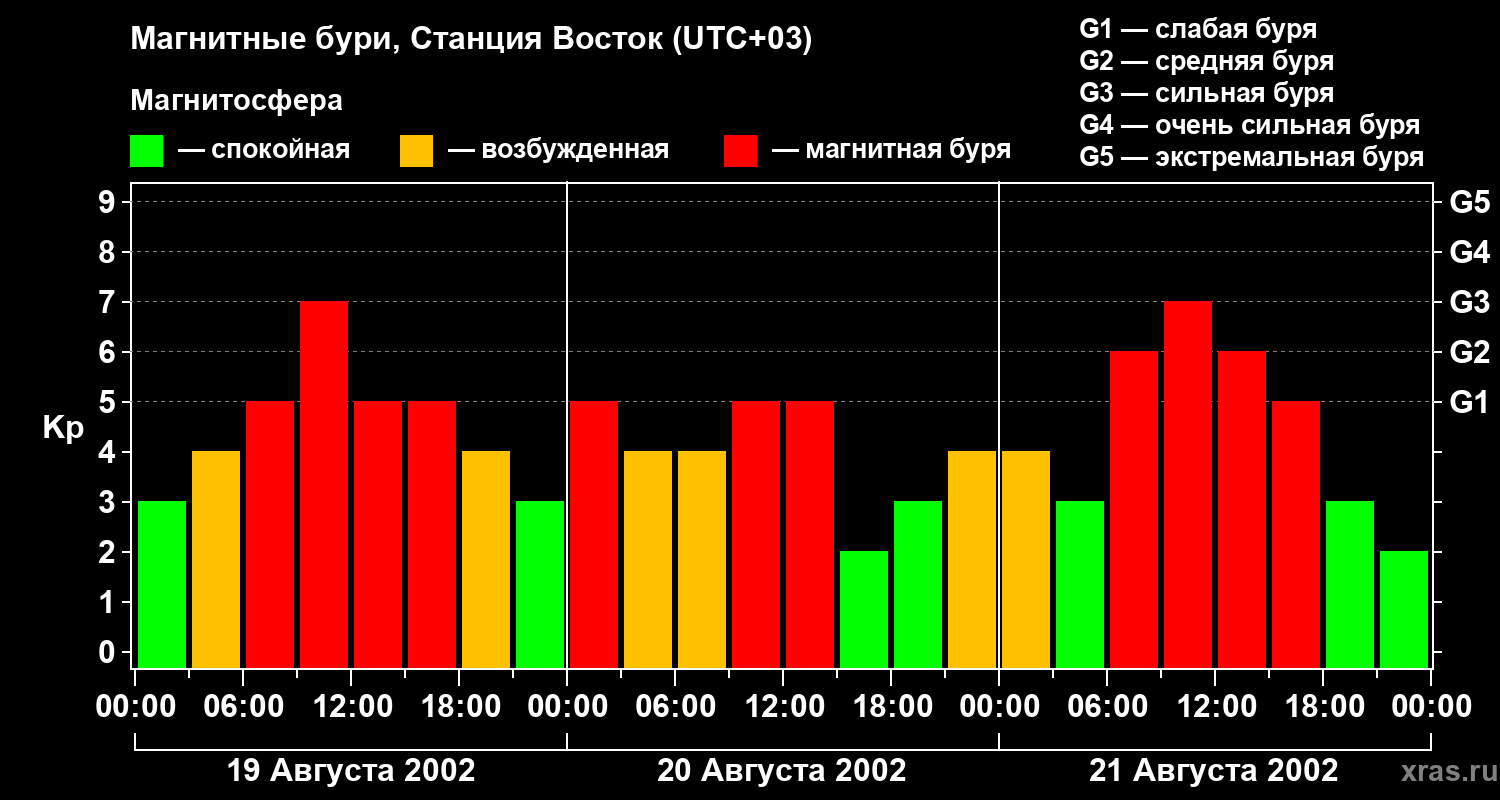 Магнитные бури локации Станция Восток — 21 августа 2002 года