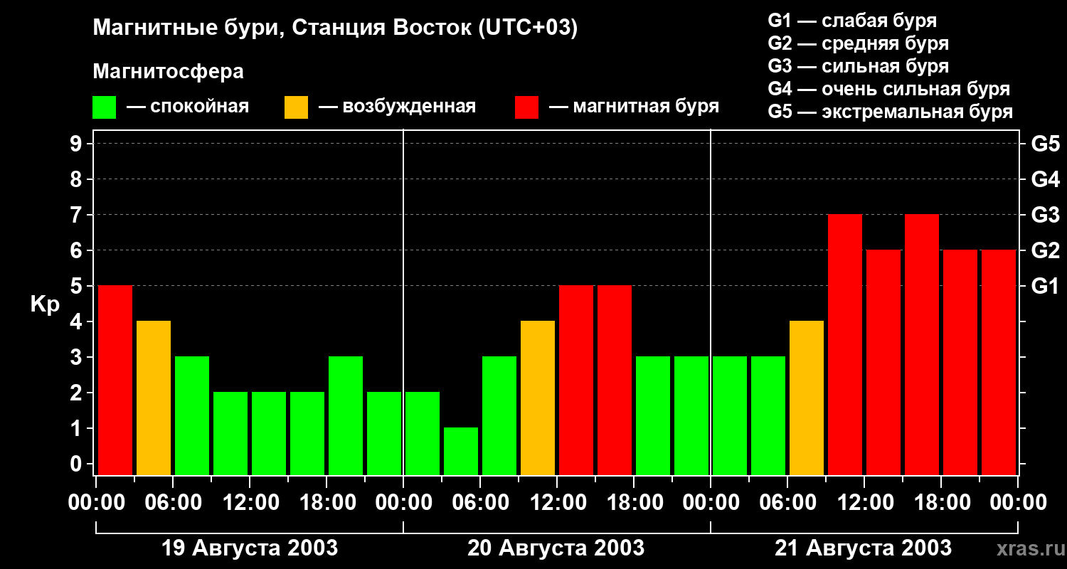 Магнитные бури локации Станция Восток — 21 августа 2003 года