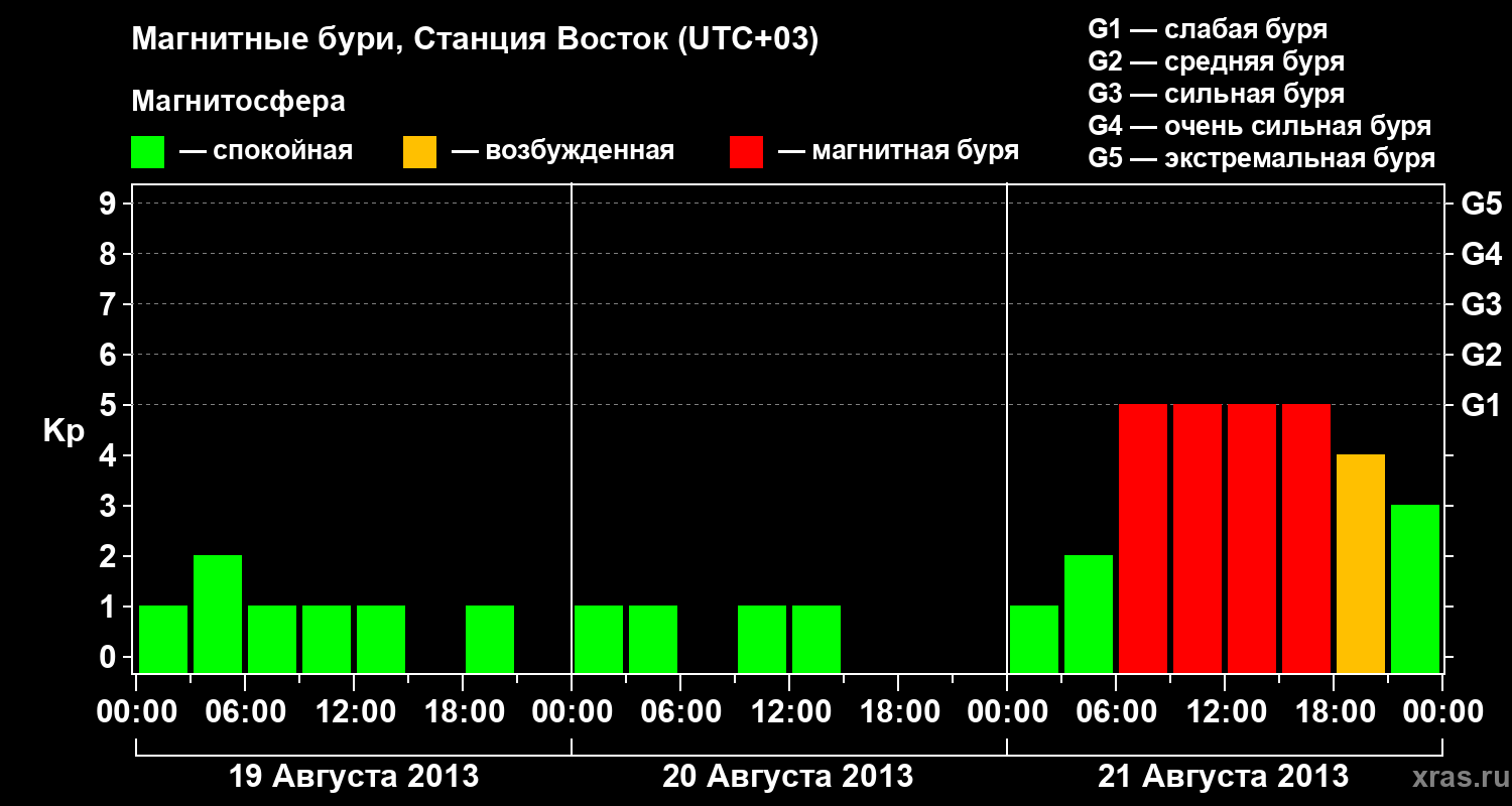 Магнитные бури локации Станция Восток — 21 августа 2013 года