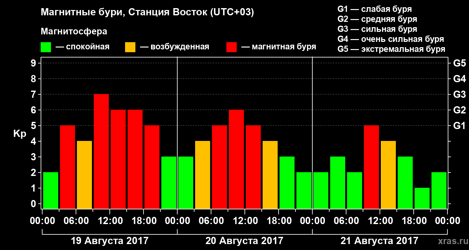 Магнитные бури локации Станция Восток 21 августа 2017 года