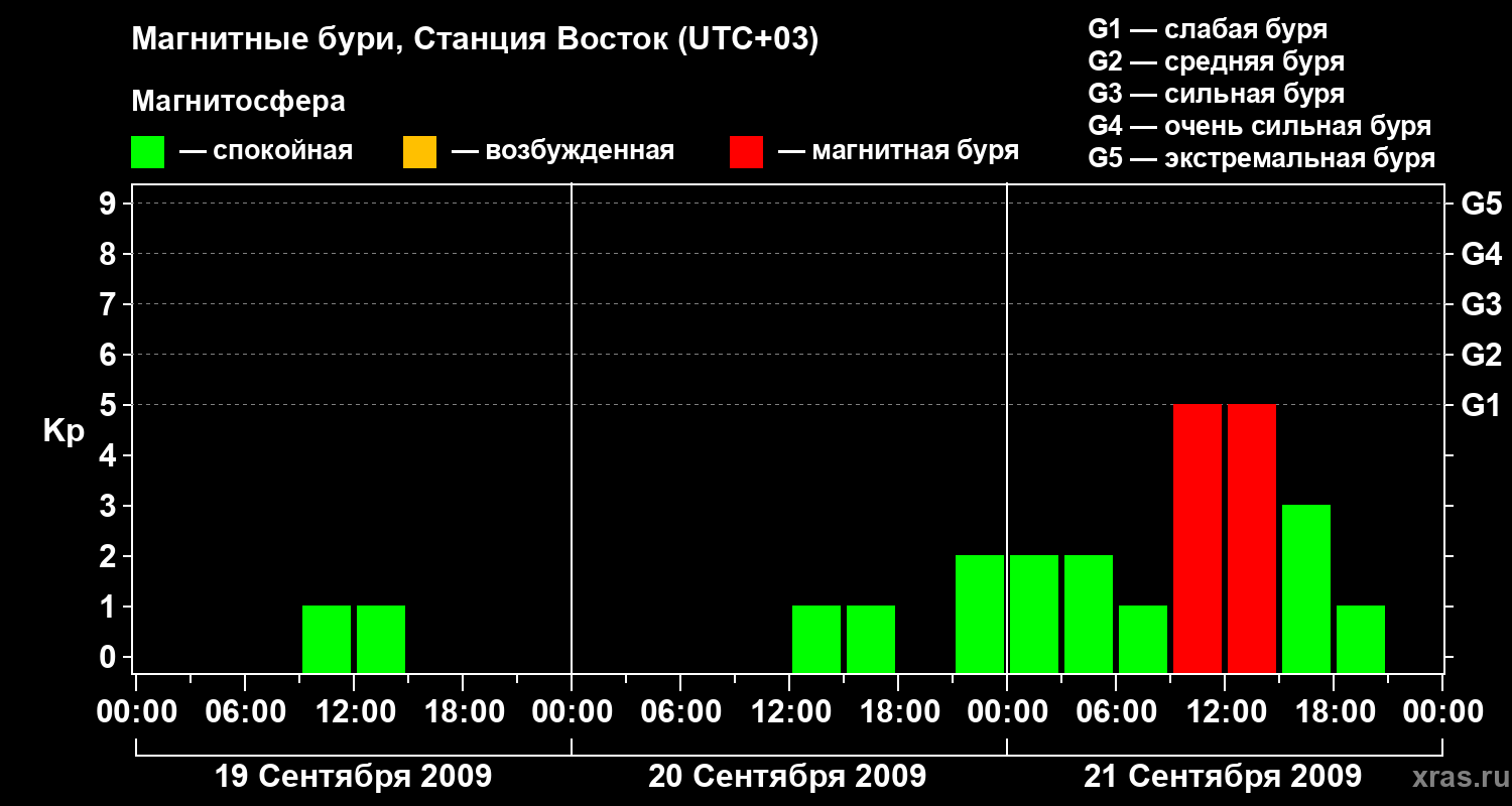 Магнитные бури локации Станция Восток — 21 сентября 2009 года