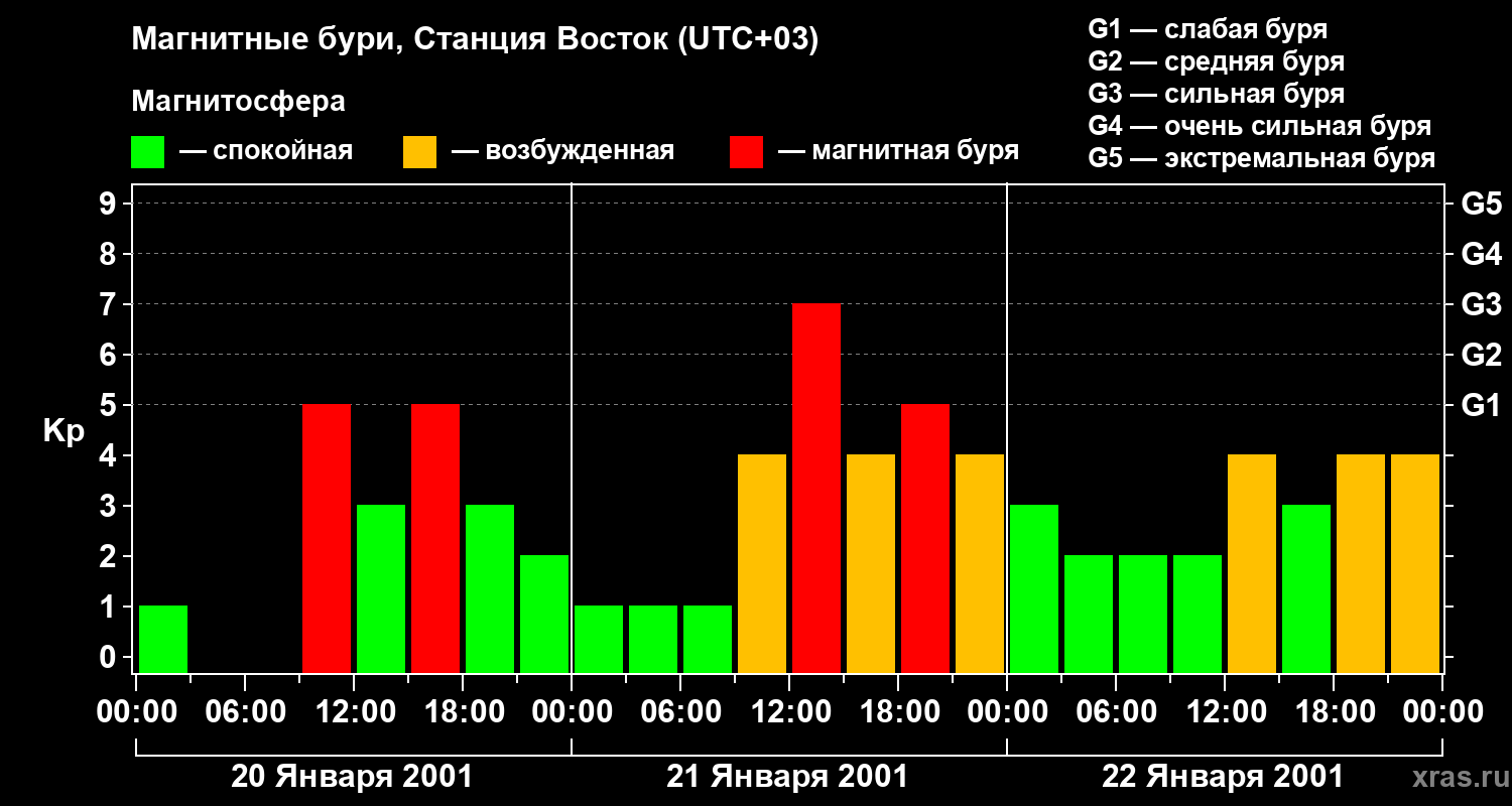 Магнитные бури локации Станция Восток — 22 января 2001 года