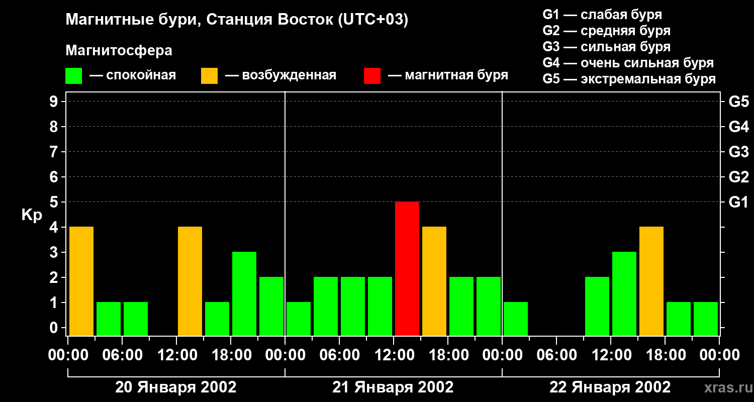 Магнитные бури локации Станция Восток — 22 января 2002 года