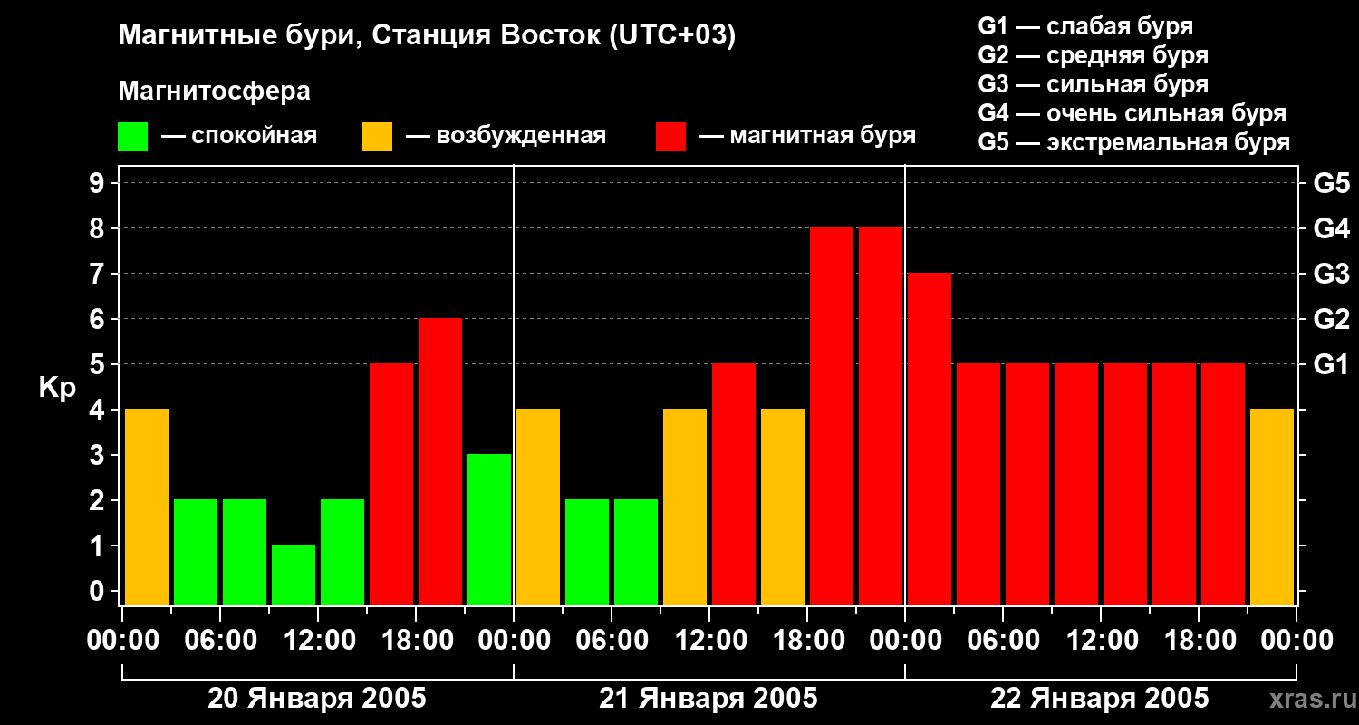 Магнитные бури локации Станция Восток 22 января 2005 года