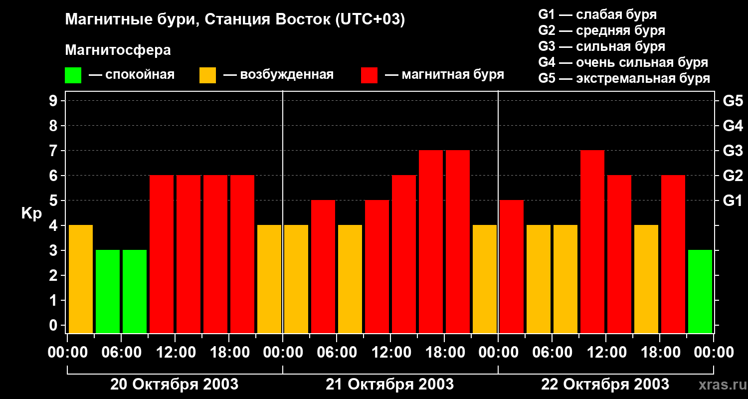 Магнитные бури локации Станция Восток — 22 октября 2003 года
